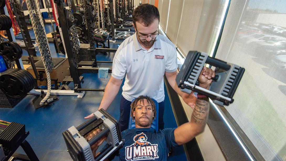 The strength and conditioning concentration at the University of Mary enables graduate students pursuing our Master of Science in Kinesiology degree to specialize in strength training and conditioning for athletes, clients, or patients of all needs and abilities. You’ll work collaboratively with current practitioners in real-world settings to gain the knowledge and skills you need for certification as a strength and conditioning specialist.